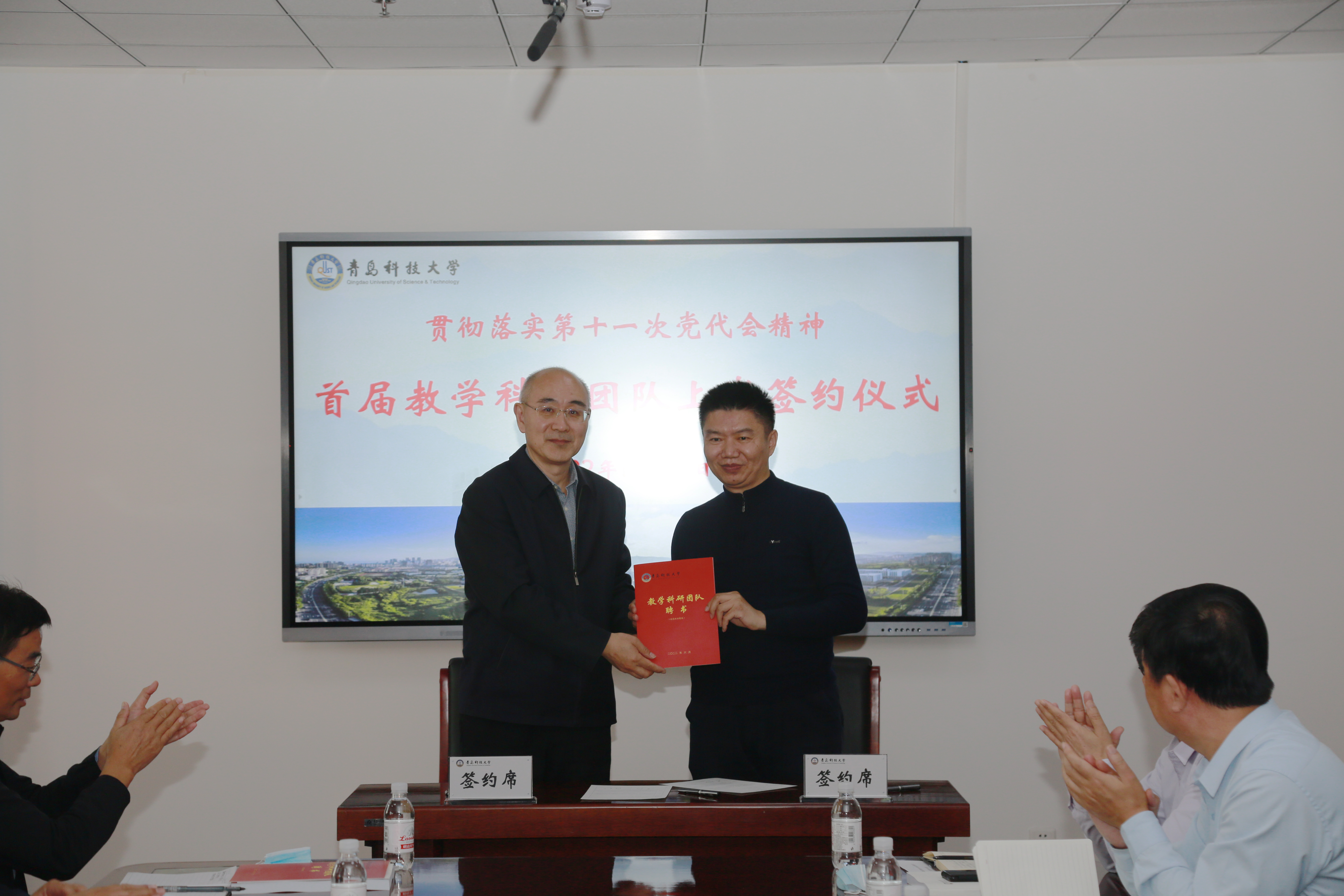 为贯彻落实学校第十一次党代会精神,深入推动学校人才团队建设和有组织科研工作走实走深,10月18日下午,学校在崂山校区综合服务楼3015会议室举行首届教学科研团队上岗签约仪式。学校党委书记李兴伟,校长陈克正,党委常委、副校长吕万翔,党委常委、副校长罗细亮出席仪式。